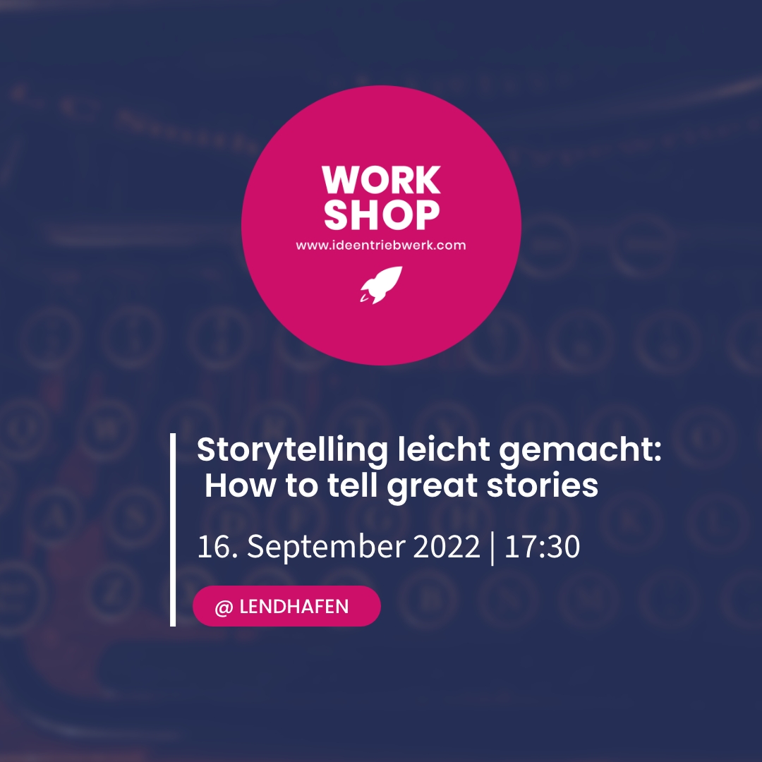 Du stehst kurz vor der Gründung deines Unternehmens, doch du weißt nicht, wie du dein Startup beschreiben sollst und damit Kund:innen gewinnen sollst? Zusammen mit Michael Bittner, CEO von ReVision, wird dir im Workshop die Wichtigkeit von Storytelling nähergebracht. Dort lernst du, wie du deine Geschichte findest, sondern sie auch emotional verdichtest und kommunizierst, sodass du genau die Menschen, Kunden, Mitarbeiter und Partner anziehst, die du wirklich willst. Außerdem erhältst du von unserem erfahrenen Workshopleiter Tipps, die das Storytelling zu einem Kinderspiel machen. Los, schreib deine Geschichte! Anschließend gibt es für die Teilnehmer:innen die Möglichkeit, bei Brötchen und Getränken zu netzwerken.