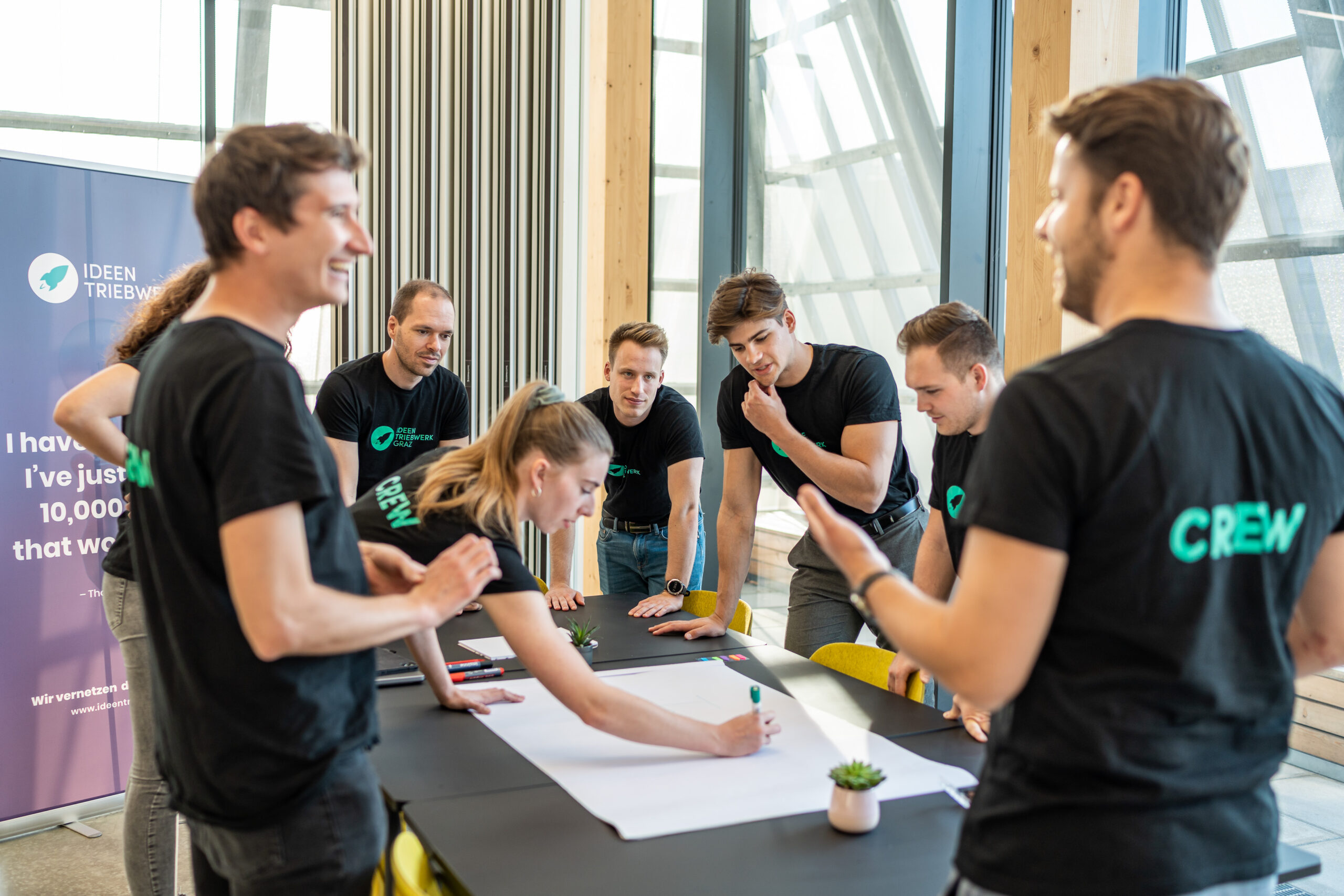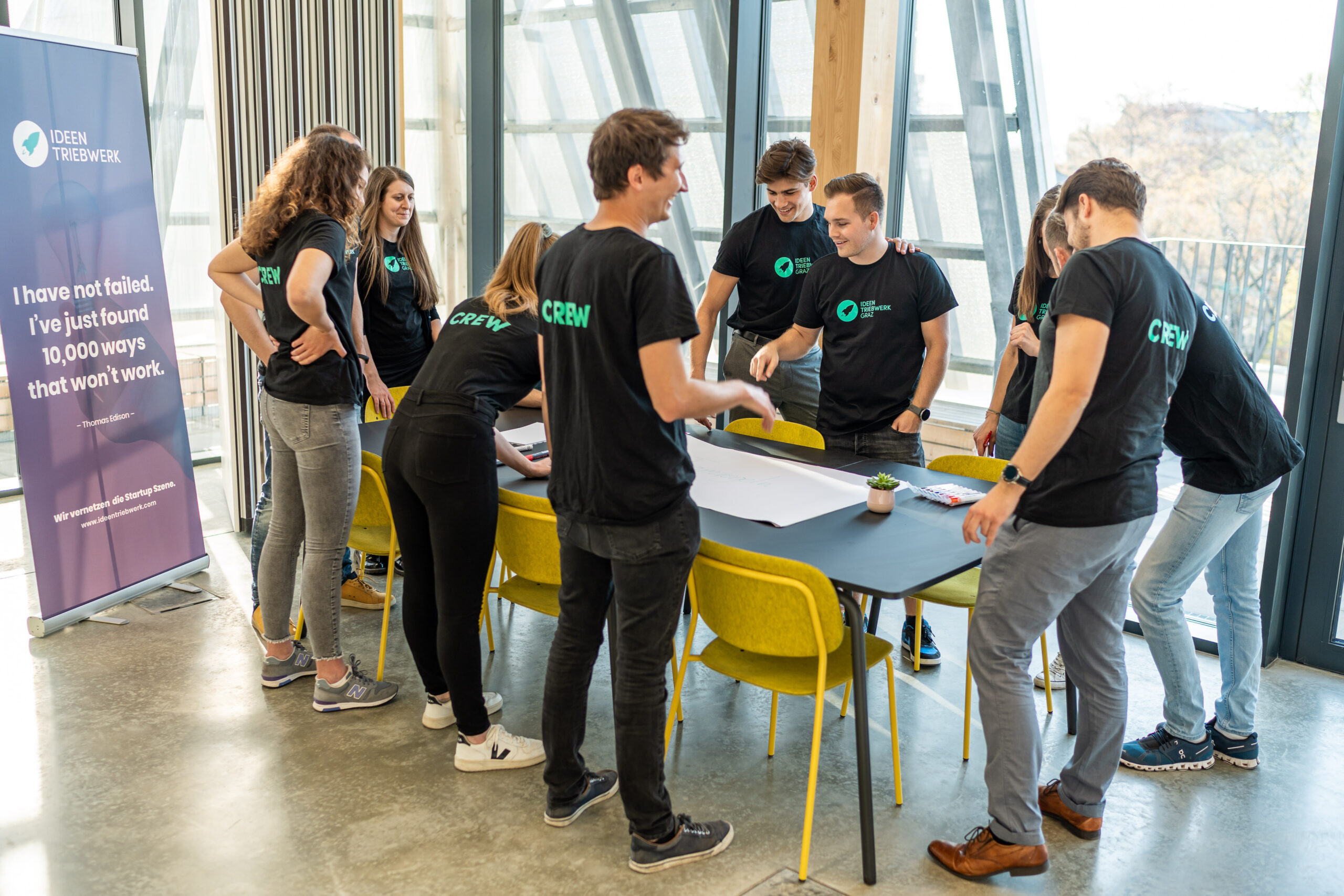 Wir sind das Ideentriebwerk. Unser Team besteht aus rund 30 Mitgliedern, die sich alle ehrenamtlich und mit Leidenschaft für Unternehmertum und Innovation engagieren. Wir sind Studierende, Berufstätige oder sogar selbst Gründer:innen, die eine gemeinsame Mission eint: wir vernetzen die Startup Szene.